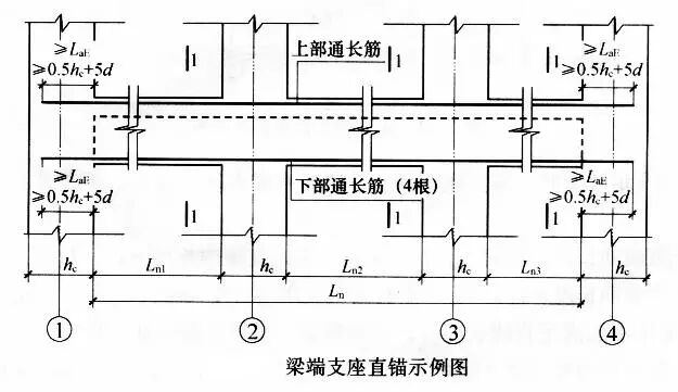 A.当梁支座足够宽时,上下部纵筋直锚在支座里,应满足如下条件,见图。