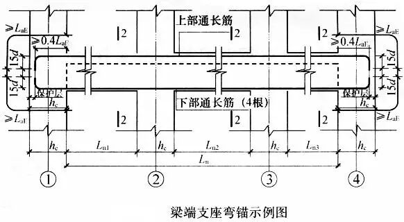 B.当梁支座不能满足直锚时,纵筋应弯锚,满足下图条件。