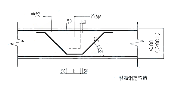 吊筋夹角取值:梁高≤800取45度,>800取60度
